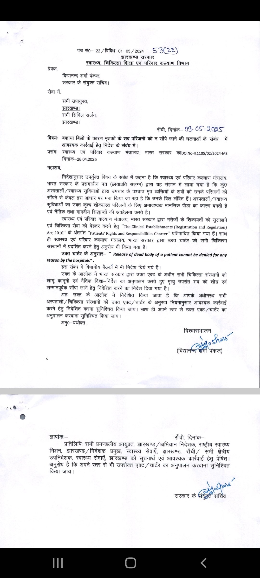 झारखंड के प्राइवेट हॉस्पिटल अब रोक कर नहीं रख पाएंगे शव, स्वास्थ्य मंत्री डॉ इरफान अंसारी ने निभाया वादा 2
