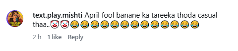 जैसे ही उनका सफाई वाला वीडियो सामने आया, कमेंट सेक्शन में मिली-जुली प्रतिक्रिया सामने आने लगी. कुछ लोगों ने कहा कि उन्हें शुरू से ही अंदाजा था, जबकि कुछ ने मजाक को ठीक नहीं माना. एक यूजर ने लिखा, “अप्रैल फूल बनाने का तरीका थोड़ा कैजुअल था.” और एक अन्य ने कहा, “आपने यह अच्छा नहीं किया.”