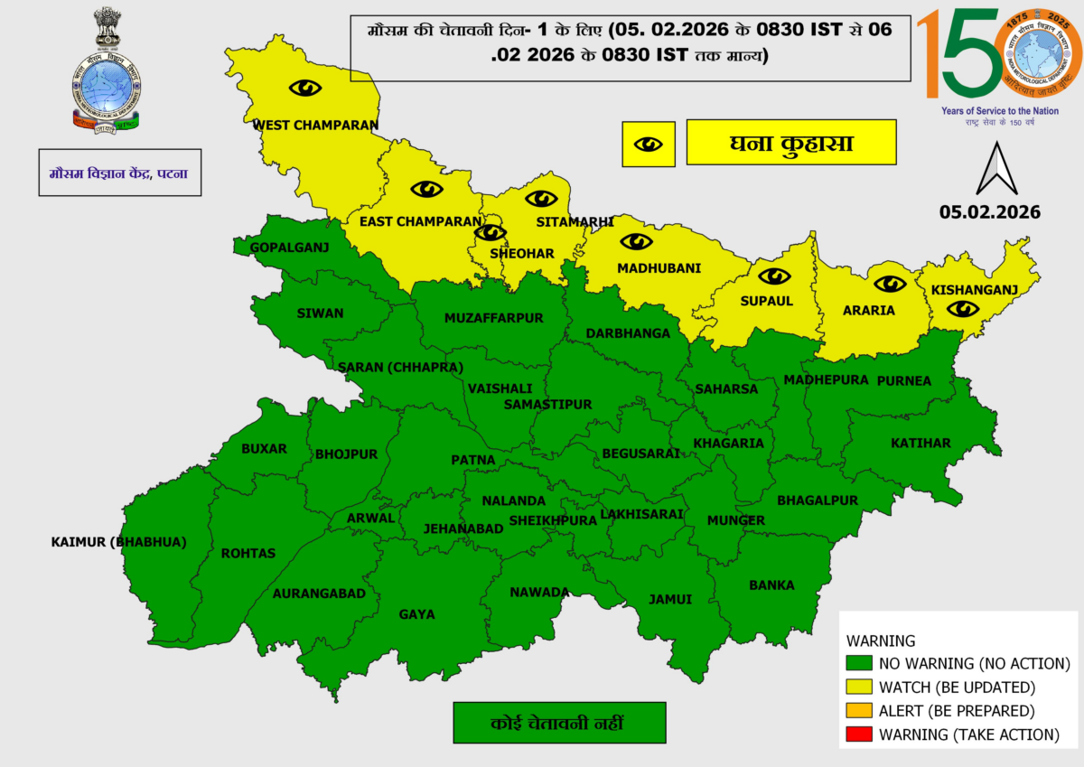 मौसम विज्ञान केंद्र पटना ने बताया कि बिहार के बाकी जिलों में फिलहाल किसी तरह की चेतावनी नहीं दी गई है. दक्षिण बिहार और मध्य बिहार के जिलों में मौसम सामान्य बना रहेगा. इन इलाकों में आसमान साफ रहेगा और दिन में हल्की धूप देखने को मिलेगी.