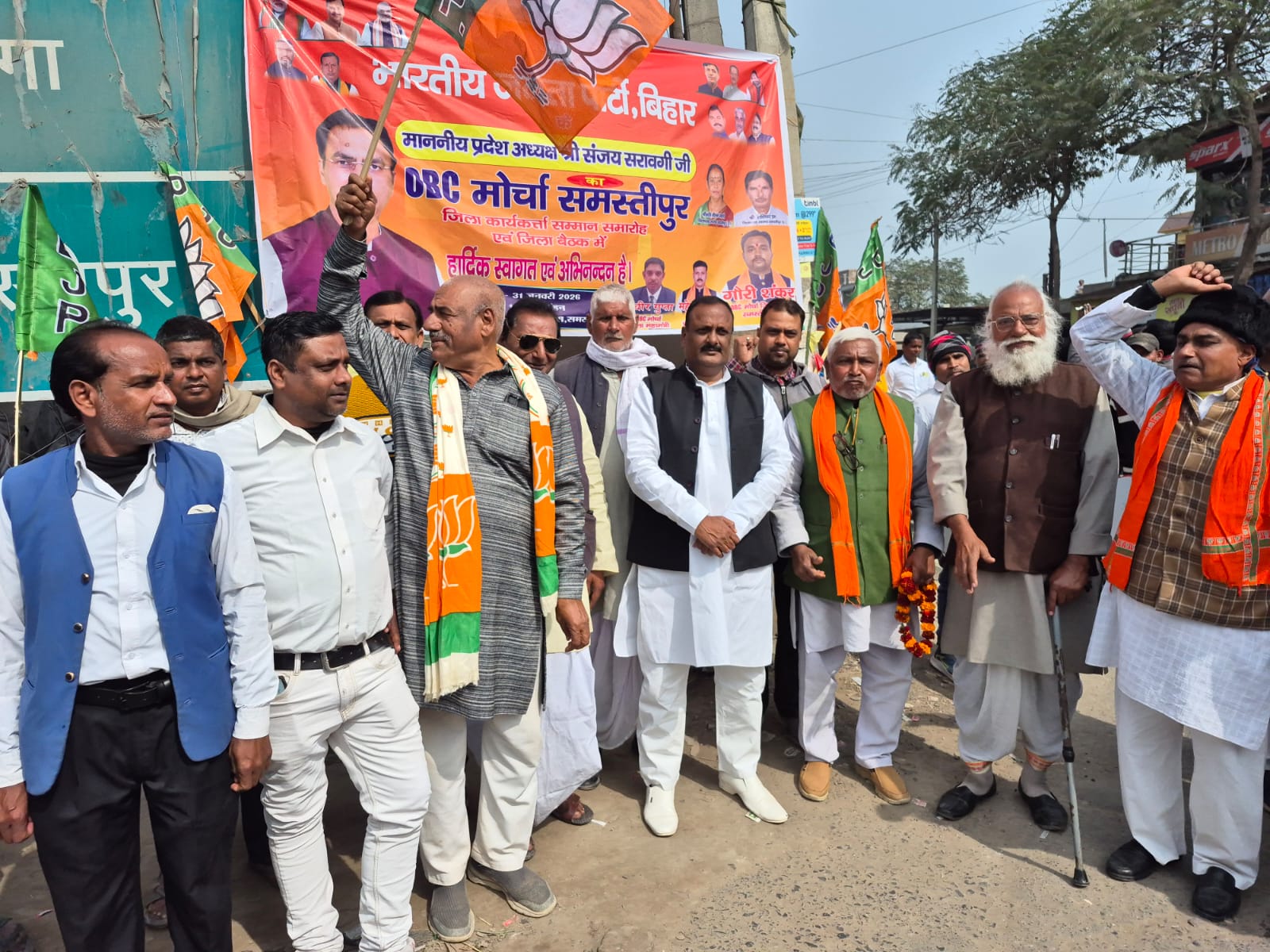 नया विचार न्यूज़ सरायरंजन: हिंदुस्तानीय जनता पार्टी के प्रदेश अध्यक्ष संजय सरावगी के समस्तीपुर आगमन के क्रम में शनिवार को मुसरीघरारी चौराहे पर कार्यकर्ताओं ने बड़े गर्मजोशी से उनका स्वागत किया। स्वागत हेतु बैंड बाजा के साथ –साथ बुलडोजर की भी व्यवस्था की गई थी, जिस पर चढ़कर कार्यकर्ता पुष्प वर्षा कर रहे थे। अपने प्रदेश अध्यक्ष के स्वागत के मौके पर प्रदेश कार्यसमिति सदस्य प्रो. अमरेन्द्र कुमार, मंडल अध्यक्ष पवन शर्मा, बबलू झा, मणि प्रसाद सिंह, विनोद वाजपेयी, राम सागर सिंह कुशवाहा, नंद कुमार झा, किसान मोर्चा के जिला अध्यक्ष सतीश झा, अनिल सिंह, डॉ.अतीश कुमार, दुर्गा सिंह सहित सैंकड़ों भाजपा कार्यकर्ता उपस्थित रहे।