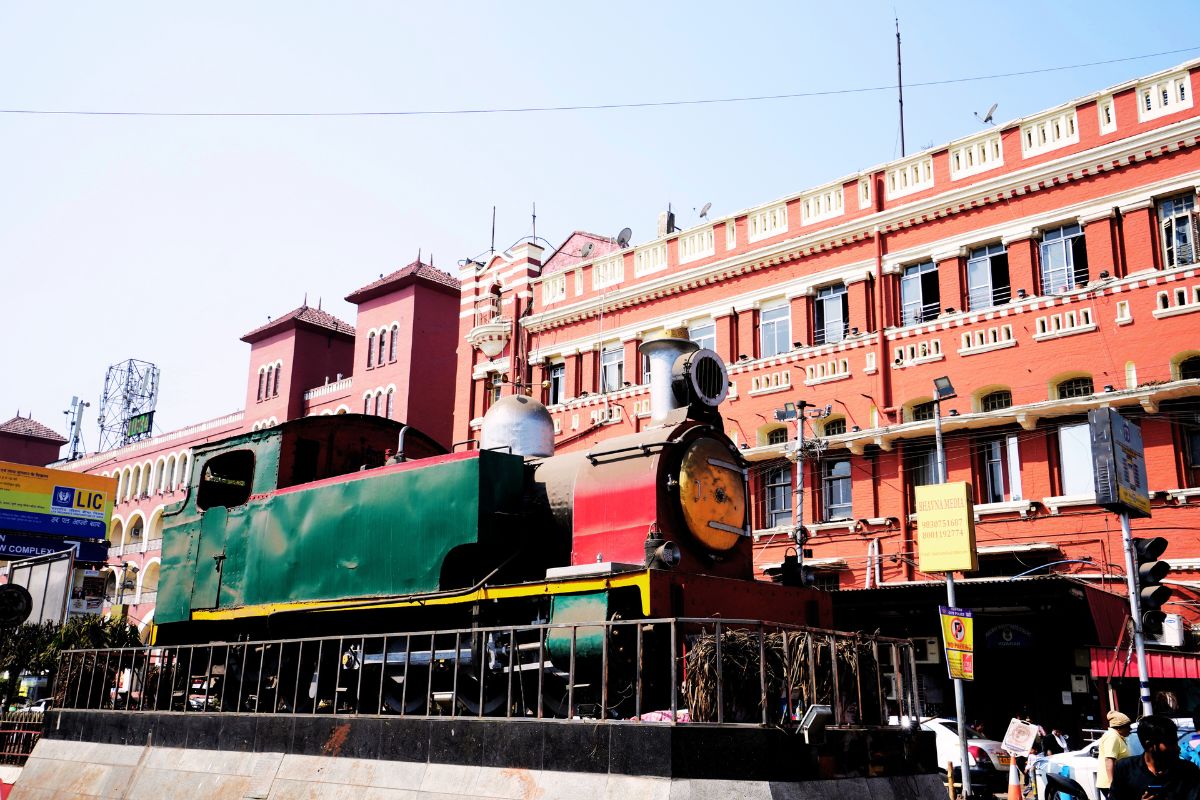 हावड़ा स्टेशन के बाहर ट्रेन का इंजन. फोटो : पीटीआई