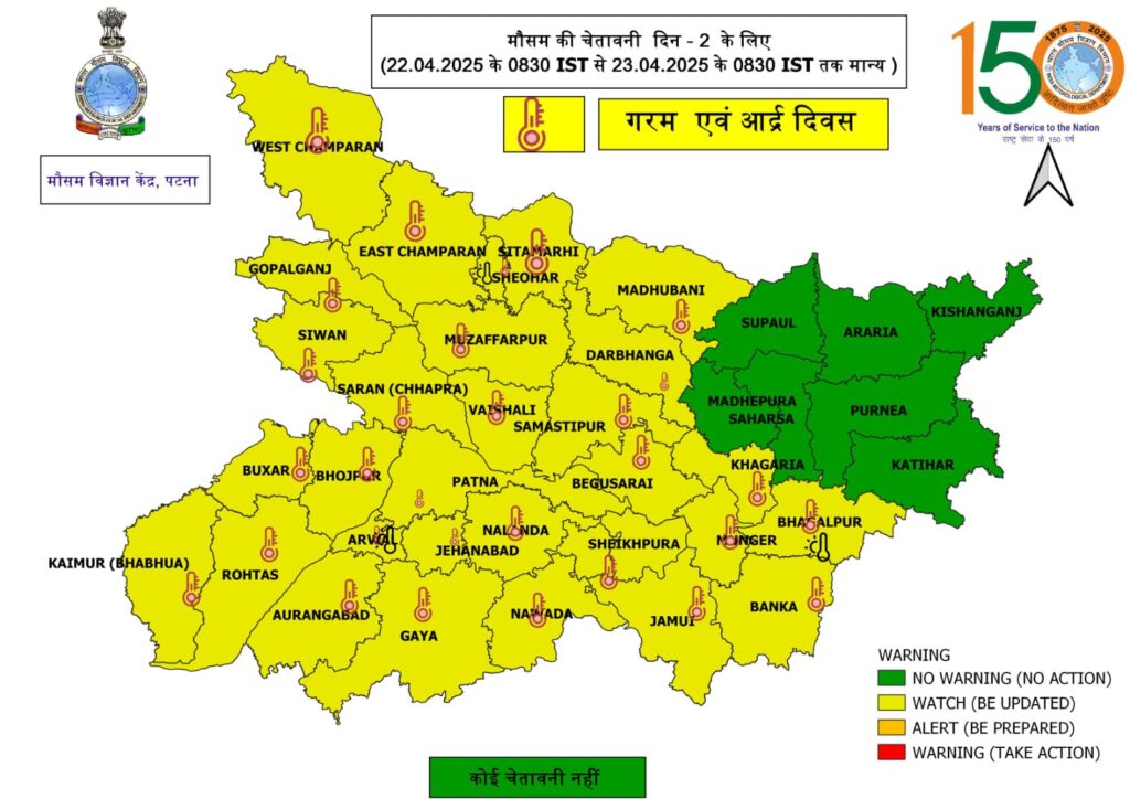Bihar Hot Day Alert: बिहार में मौसम ने एक बार फिर करवट ली है और इस बार गर्मी ने लोगों का हाल बेहाल कर दिया है. सोमवार को प्रदेशभर में उमस भरी गर्मी ने लोगों को घरों में कैद कर दिया. बीते दो दिनों में ही तापमान में अचानक 10 डिग्री सेल्सियस तक की बढ़ोतरी दर्ज की गई है. स्थिति यह है कि कुछ जिलों में पारा 42 डिग्री सेल्सियस के पार चला गया है. मौसम विभाग ने इसे सिर्फ शुरुआत बताते हुए आने वाले दिनों में और अधिक गर्मी पड़ने की चेतावनी दी है. हफ्ते भर के लिए हीट वेव, हॉट नाइट और हॉट डे का अलर्ट पटना स्थित मौसम विज्ञान केंद्र ने 22 अप्रैल को प्रदेश के 31 जिलों में हॉट डे और उमस भरी गर्मी को लेकर येलो अलर्ट जारी किया है. इस हफ्ते के लिए हीट वेव, हॉट नाइट और हॉट डे की संभावना जताई गई है. विशेषज्ञों ने लोगों को विशेष सतर्कता बरतने की सलाह दी है, खासकर दोपहर 12 बजे से शाम 4 बजे के बीच घर से बाहर निकलने से परहेज करने की हिदायत दी गई है. Bihar hot day alert: बिहार के इन 31 जिलों में हॉट डे का अलर्ट, तापमान पहुंचा 42 डिग्री के पार 2 राज्य में चल रही गर्म हवाएं मौसम विभाग के अनुसार, उत्तर-पश्चिम राजस्थान से लेकर बांग्लादेश तक एक पूर्व-पश्चिम द्रोणिका बनी हुई है, जिससे गर्म हवाएं बिहार की ओर आ रही हैं. 24 अप्रैल से एक नया पश्चिमी विक्षोभ पश्चिमी हिमालयी क्षेत्र को प्रभावित कर सकता है, जिससे गर्मी और बढ़ सकती है. 21 अप्रैल को डेहरी में सर्वाधिक तापमान 42.4°C दर्ज किया गया. जबकि गया, औरंगाबाद, भोजपुर और सासाराम जैसे जिलों में भी पारा 40 डिग्री से ऊपर रहा. आने वाले दिनों में गर्मी और उमस से राहत मिलने की संभावना बेहद कम है. Also Read: पापा आप दुनिया के सबसे… ट्रेन के आगे कूदा NIT पटना का छात्र, इस बीमारी से था परेशान The post Bihar Hot Day Alert: बिहार के इन 31 जिलों में हॉट डे का अलर्ट, तापमान पहुंचा 42 डिग्री के पार appeared first on Naya Vichar.