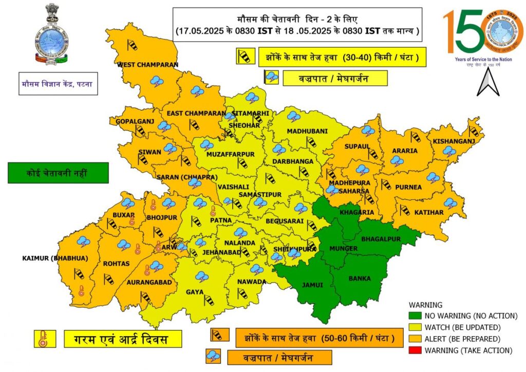 Bihar Rain Alert: बिहार के इन 33 जिलों में 17-18 मई को होगी भयंकर बारिश, IMD ने जारी किया ऑरेंज और येलो अलर्ट