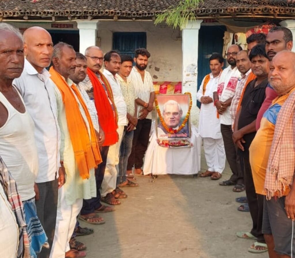 नया विचार न्यूज़ सरायरंजन : हिंदुस्तान के पूर्व प्रधानमंत्री हिंदुस्तानरत्न से सुशोभित अटल बिहारी वाजपेयी की पुण्यतिथि पर भाजपा सरायरंजन नगर के मंडल अध्यक्ष महेश रजक के आवास पर बबलू झा की अध्यक्षता में दोनों मंडलों की संयुक्त रूप से श्रद्धांजलि सभा आयोजित की गई। इसमें मुख्यतिथि भाजपा समस्तीपुर दक्षिणी के जिलाध्यक्ष शशिधर झा ने अटल बिहारी वाजपेयी की जीवनी पर प्रकाश डालकर देश को समर्पित होने की बात कही। वहीं बिहार सवर्ण आयोग के सदस्य जयकृष्ण झा ने सभी कार्यकर्ताओं को सच्चे मन से पार्टी की सेवा करने की बात कही। कार्यकर्ताओं में दोनों मण्डलों के महामंत्री दुर्गा सिंह,शिव कुमार झा,पंकज झा,मण्डल मंत्री सिंटू रजक, हरि प्रसाद,शानू ठाकुर,संजीत सिंह, यशवन्त पोद्दार सहित दर्जनों कार्यकर्ता मौजूद थे।