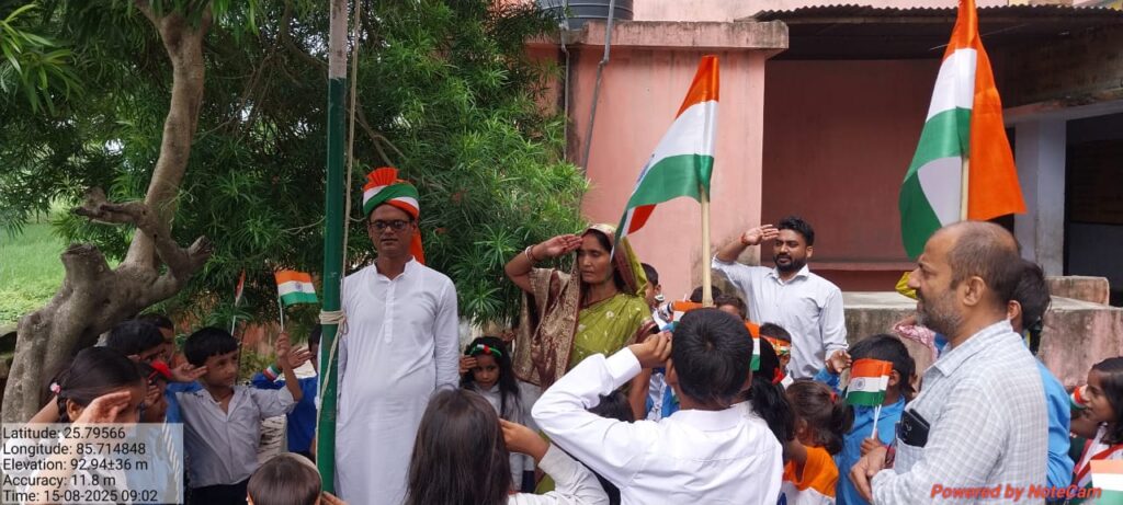नया विचार न्यूज़ सरायरंजन : हिंदुस्तानीय स्वतंत्रता की 79 वीं वर्षगांठ पर प्रखंड मुख्यालय तथा पंचायत समिति भवन पर प्रखंड प्रमुख वीणा कुमारी, सरायरंजन नगर पंचायत भवन पर मुख्य पार्षद पूजा कुमारी,मनरेगा कार्यालय पर पीओ राहुल कुमार, बाल विकास परियोजना कार्यालय पर सीडीपीओ पुष्पराज हिमांशु,सीएचसी पर प्रभारी चिकित्सा पदाधिकारी डॉ .अमित कुमार, श्रीराम जानकी मेडिकल कॉलेज पर अधीक्षक डॉ. जी. सी.कर्ण,राजकीय अभियंत्रण महाविद्यालय पर प्राचार्य डॉ. राजकिशोर दुगनायत, केएसआर कॉलेज सरायरंजन पर प्राचार्य डॉ.विपिन कुमार झा, उत्क्रमित उच्च माध्यमिक विद्यालय लाटबसेपुरा पर प्रधानाध्यापक अनंत कुमार राय, ग्लोबल विजन स्कूल मुसरीघरारी पर निदेशक शाकिर रजा,सरायरंजन पश्चिमी पैक्स पर पैक्स अध्यक्ष नीतू देवी,सरायरंजन भाजपा दक्षिणी मंडल कार्यालय पर मंडल अध्यक्ष बबलू झा,सरायरंजन भाजपा उत्तरी मंडल कार्यालय पर मंडल अध्यक्ष जय कुमार सिंह, प्रखंड जदयू कार्यालय पर रामाश्रय प्रसाद, सरायरंजन थाना पर थानाध्यक्ष धनंजय कुमार, मुसरीघरारी थाना पर थानाध्यक्ष राकेश कुमार सिंह एवं घटहो थाना पर थानाध्यक्ष मंजुला मिश्रा ने झंडोत्तोलन किया।