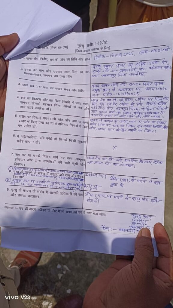 मृतकों की पहचान रौशनगंज थाना क्षेत्र के 14 वर्षीय सचिन कुमार और बाकेंबाजार थाना क्षेत्र के 14 वर्षीय निखिल कुमार के रूप में हुई। घटना के बाद परिजनों में कोहराम मच गया। पुलिस मौके पर पहुंची, लेकिन परिजनों ने पोस्टमार्टम कराने से इनकार कर दिया।