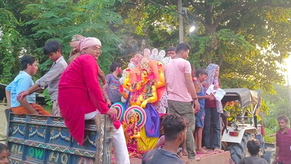 नया विचार न्यूज़ शिवाजीनगर/समस्तीपुर – शिवाजी नगर प्रखंड क्षेत्र में गणेश महोत्सव की धूम के बीच बल्लीपुर गांव में भी भव्य आयोजन देखने को मिला। गांव निवासी संतोष राय के आवास पर इस वर्ष भगवान गणेश की प्रतिमा स्थापित की गई थी। 27 अगस्त को विधि-विधान और मंत्रोच्चारण के साथ गणपति बप्पा की प्राण प्रतिष्ठा कर पूजा-अर्चना आरंभ की गई। पूरे 11 दिनों तक गांव का माहौल भक्तिमय बना रहा।इस दौरान रोजाना सुबह-शाम पूजा, आरती, हवन और भजन-कीर्तन का आयोजन होता रहा। स्थानीय स्त्री-पुरुष, शिशु और बुजुर्ग बड़ी संख्या में शामिल होकर श्रद्धा भाव से गणपति वंदना करते रहे। गांव के युवाओं ने भी उत्सव को सफल बनाने में बढ़-चढ़कर भागीदारी निभाई। पूरे 11 दिन तक गांव में धार्मिक कार्यक्रमों के साथ-साथ सांस्कृतिक रंग भी देखने को मिले। कई जगहों पर भजन-कीर्तन, नृत्य और झांकी प्रदर्शन का आयोजन हुआ। ग्रामीणों ने इसे केवल धार्मिक अनुष्ठान नहीं, बल्कि सामाजिक एकता और भाईचारे का पर्व बना दिया। शनिवार को गणेश प्रतिमा विसर्जन के लिए भव्य शोभायात्रा निकाली गई। डीजे की धुन और ढोल-नगाड़ों की थाप पर लोग नाचते-गाते हुए नगर भ्रमण करते रहे। “गणपति बप्पा मोरया” और “अगले बरस तू जल्दी आ” जैसे जयकारों से पूरा गांव गूंज उठा।विसर्जन यात्रा बन्नी पोखर तक पहुंची, जहां ग्रामीणों ने परंपरागत विधि से भगवान गणेश की प्रतिमा का जल में विसर्जन किया। इस मौके पर गांवभर के लोग मौजूद थे।गणेश विसर्जन यात्रा में चंदू कुमार, लोकेश चौधरी, सुरेंद्र कुमार, बिमल राय, दिलीप पोद्दार, सूरज मिश्रा समेत सैकड़ों ग्रामीण शामिल हुए। सभी ने मिलकर गांव की सुख-समृद्धि और शांति की कामना की।पूरे कार्यक्रम के दौरान गांव में उत्साह और उमंग का खास नजारा देखने को मिला। स्त्रीएं मंगलगीत गाती नजर आईं, वहीं शिशु उत्साह से जुलूस में शामिल हुए। ग्रामीणों ने इसे गांव की परंपरा और आस्था से जुड़ा आयोजन बताया, जो हर वर्ष और भी भव्यता के साथ आयोजित किया जाता है।