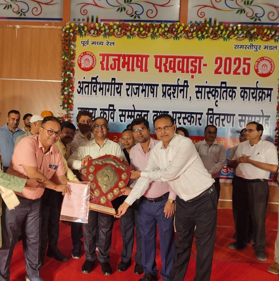 समारोह में सांस्कृतिक कार्यक्रम, हास्य कवि सम्मेलन एवं पुरस्कार वितरण समारोह का भव्य आयोजन नया विचार न्यूज़ समस्तीपुर – समस्तीपुर मंडल में राजभाषा पखवाड़ा – 2025 के अवसर पर ललित कला केंद्र, अधिकारी क्लब परिसर, समस्तीपुर में एक भव्य कार्यक्रम का आयोजन किया गया। इस अवसर पर एक राजभाषा प्रदर्शनी भी लगाई गई जिसमें सभी विभागों ने अपने अपने कार्यालय में राजभाषा हिंदी में किये गए कार्यों को प्रदर्शित किया। इस अवसर पर सांस्कृतिक कार्यक्रम भी प्रस्तुत किये गए। इस दौरान एक हास्य कवि सम्मेलन भी आयोजित किया गया जिसमें सभी आमंत्रित कवियों ने उपस्थित दर्शकों का काफी मनोरंजन किया। कार्यक्रम के अंत में पुरस्कार वितरण समारोह का सफलतापूर्वक आयोजन किया गया जिसमें राजभाषा पर आधारित सभी प्रतियोगिताओं तथा राजभाषा प्रदर्शनी के विजेताओं को मरेप्र द्वारा सम्मानित किया गया। इस कार्यक्रम के मुख्य अतिथि मंडल रेल प्रबंधक श्री ज्योति प्रकाश मिश्रा तथा विशिष्ट अतिथि अपर मंडल रेल प्रबंधक श्री आलोक कुमार झा थे। कार्यक्रम वरीय मंडल वित्त प्रबंधक सह उप मुख्य राजभाषा अधिकारी श्री गणनाथ झा की अध्यक्षता में हुआ।कार्यक्रम का शुभारंभ अपराह्न राजभाषा प्रदर्शनी के अवलोकन से हुआ। तत्पश्चात राष्ट्रगान के साथ औपचारिक कार्यक्रम प्रारंभ हुआ। इसके बाद मंडल रेल प्रबंधक द्वारा दीप प्रज्वलन कर पुरस्कार वितरण समारोह का शुभारंभ किया गया। इस अवसर पर राजभाषा के प्रचार-प्रसार और हिंदी के प्रयोग को बढ़ावा देने हेतु उत्कृष्ट योगदान देने वाले अधिकारियों एवं कर्मचारियों को सम्मानित किया गया।सांस्कृतिक प्रस्तुतियों के उपरांत आयोजित हास्य कवि सम्मेलन में आमंत्रित कवियों–श्री नसीम अख्तर एवं श्री आमिर हमजा ने अपनी रचनाओं से दर्शकों को खूब गुदगुदाया और कार्यक्रम को जीवंत बना दिया। समापन सत्र में मंडल रेल प्रबंधक श्री ज्योति प्रकाश मिश्रा ने अपने उद्बोधन में राजभाषा हिंदी के महत्व पर बल देते हुए कहा कि राजभाषा के अधिकतम प्रयोग से न केवल प्रशासनिक कार्य सरल होंगे बल्कि सांस्कृतिक एकता भी सुदृढ़ होगी। उन्होंने यह भी कहा कि समस्तीपुर समूह ‘क’ के अंतर्गत आता है जिससे हमारी हिंदी में कार्य करने की जिम्मेवारी और बढ़ जाती है। हम न सिर्फ हिंदी में ज्यादा से ज्यादा कार्य करे बल्कि व्याकरण दोषों से रहित कार्य करें , हमारी यही कोशिश होनी चाहिए।