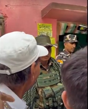 भाजपा उम्मीदवार ने मतदाता को हटाने के लिए केंद्रीय बलों को बुलाया. तृणमूल कांग्रेस के चिन्ह वाली टी-शर्ट पहने मतदाता मतदान केंद्र के सामने लंबी कतार में खड़े थे. बर्धमान दक्षिण विधानसभा सीट से भाजपा उम्मीदवार मौमिता बिश्वास मिश्रा ने यह हंगामा किया. उन्होंने ड्यूटी पर तैनात केंद्रीय बलों के जवान को बुलाया और मतदाता को मतदान केंद्र से बाहर निकलवाया. यह घटना बर्धमान दक्षिण विधानसभा क्षेत्र के बेलपुकुर जीएसएफ पी स्कूल में हुई.
