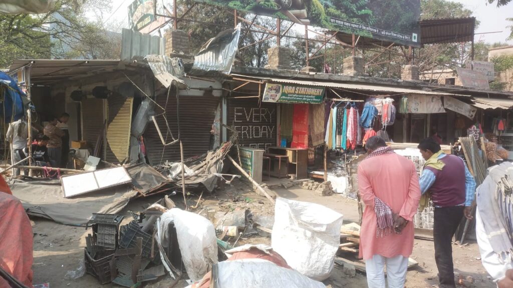 अनियंत्रित ट्रक व मालवाहक पिकअप वैन की टक्कर में दो घायल ,चार दुकानें भी क्षतिग्रस्त