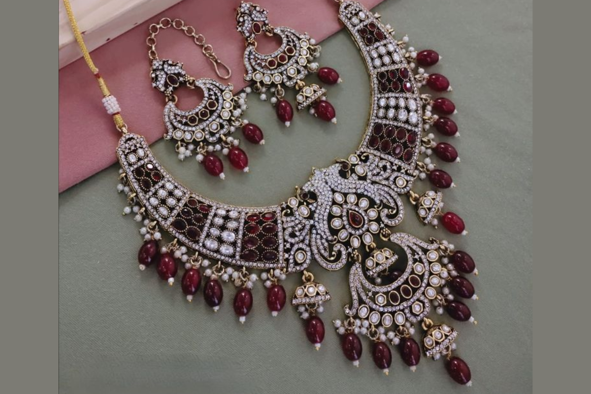 अगर आप कुछ क्लासिक और टाइमलेस गिफ्ट करना चाहते हैं, तो एंटीक फिनिश वाला जड़ाऊ हार एक बेहतरीन विकल्प है. इस हार में ट्रेडिशनल मोटिफ्स और फ्लोरल डिटेलिंग होती है जो इसे रॉयल टच देती है. यह हार साड़ी, लहंगे और सूट के साथ शानदार दिखता है.