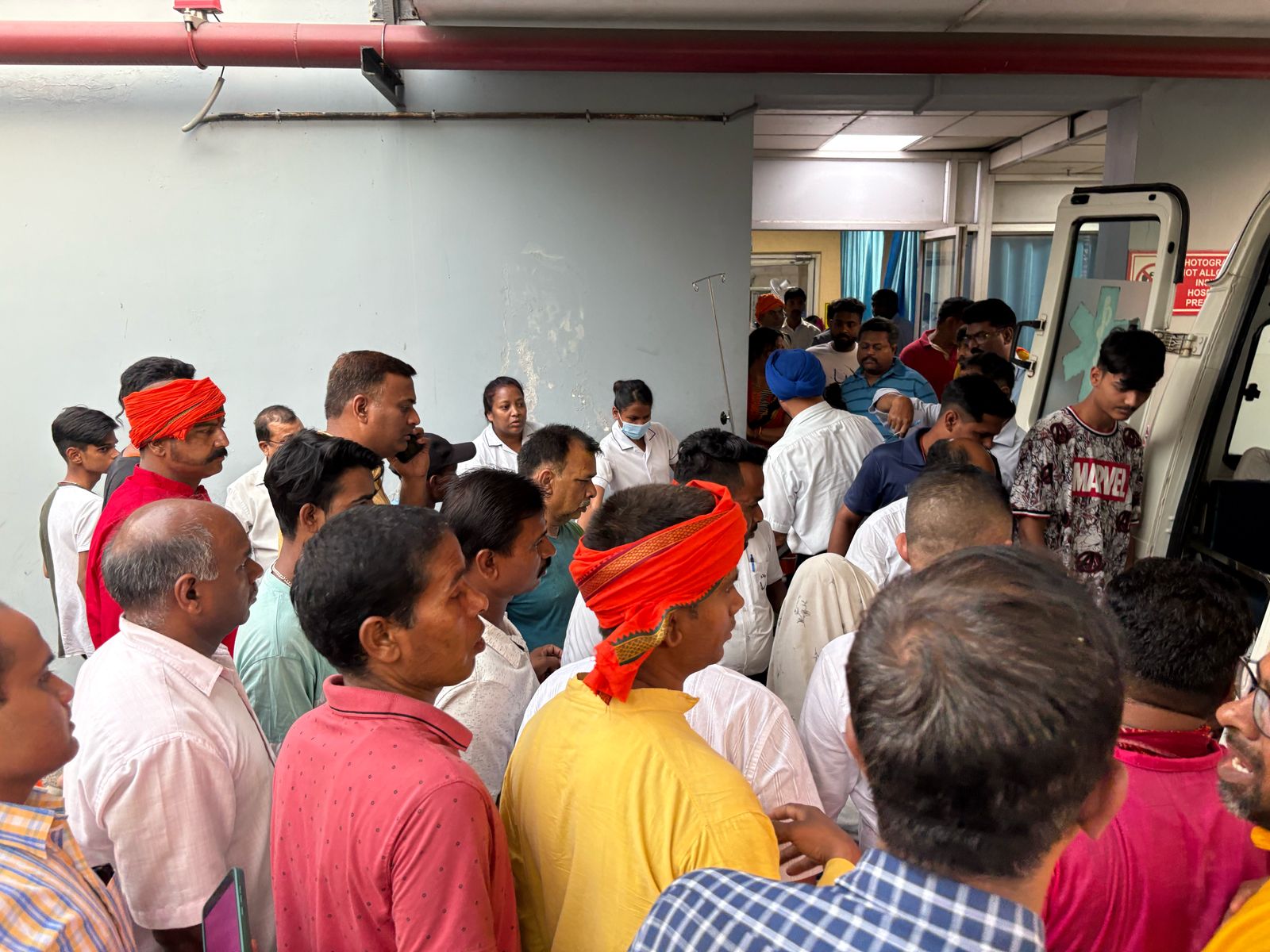 Jamshedpur Accident News : parsudih थाना क्षेत्र के यशोदा नगर, छोटा Govindpur में रामनवमी झंडा विसर्जन के लिए निकले शारदा राम बजरंग अखाड़ा समिति का झंडा हाई टेंशन तार की चपेट में आ गया. जिससे झंडा पकड़े 6 लोग करंट की चपेट में आकर जख्मी हो गये. जख्मी होने वालों में संजय सिंह, विजय प्रसाद, प्रदीप वर्मा, शशि प्रसाद, डे विजय कुमार और यश प्रजापति शामिल है. घटना के बाद सभी को आनन-फानन में इलाज के लिए Tata moters Hospital लाया गया. जहां गंभीर रूप से जख्मी पप्पू सिंह को बेहतर इलाज के लिए Tata Main Hospital रेफर कर दिया गया. घटना सोमवार की शाम करीब 5:45 बजे की है.घटना के संबंध में क्षेत्र के जिला परिषद सदस्य डॉक्टर परितोष सिंह ने बताया कि शारदा राम बजरंग अखाड़ा समिति अपना झंडा लेकर विसर्जन जुलूस निकाला था. इस दौरान यशोदा नगर के सुब्बा राव के घर के पास झंडा पूजन के लिए हर वर्ष की तरह विसर्जन को रोका गया. इस दौरान ऊपर से गुजर रहे High Tention तार में झंडा का एक भाग संपर्क में आ गया. जिससे पूरे बांस में करंट फैल गया और झंडा का बांस पकड़े 6 लोग झुलस कर मूर्छित हो गये.