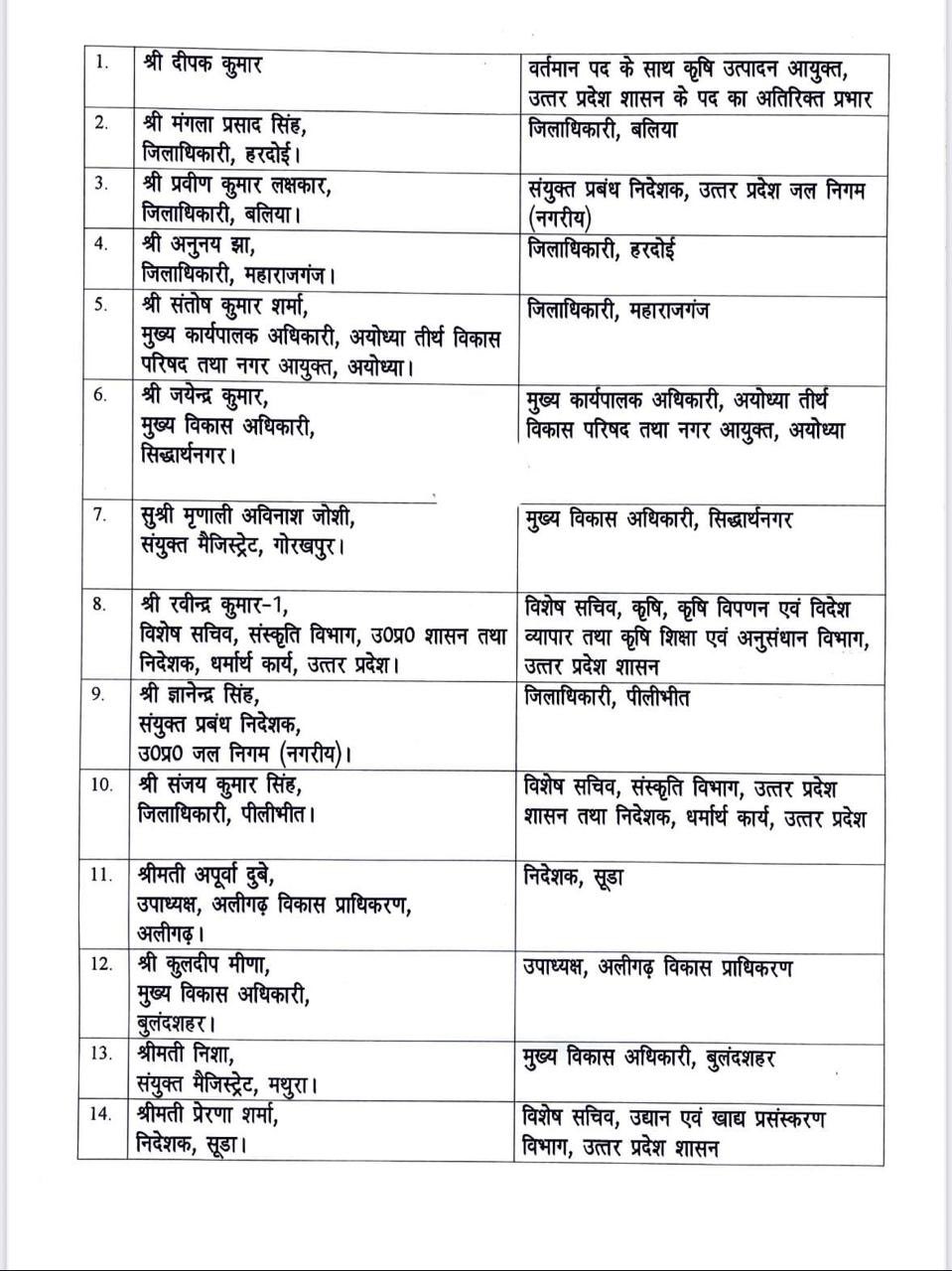 UP IAS Transfer की लिस्ट